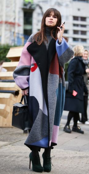 Z obserwacji Aldony wynika, że są kobiety wzorzyste, i są takie, które wzorków i mieszania kolorów unikają. W modzie, tak jak w życiu, ważne jest jednak znalezienie złotego środka. I można, proszę Państwa, postawić na kolory nie popadając w pstrokaciznę zupełną (mieszanie deseni i faktur jest jedną nie lada sztuką i wymaga odwagi). Należy zatem dozować porcję koloru nie stając się kolorową papugą przykuwającą wszystkie spojrzenia na ulicy (Aldona ceniła sobie najbardzej badawczo-taksujące spojrzenia dobrze ubranych kobiet, lubiła bowiem zwracać na siebie uwagę ze względu na styl). Aldona tuż po spotkaniu wyjęła z czarnego płaszcza telefon i podjęła poszukiwania oryginalnego nie-czarnego płaszcza w dobrym stylu. Oto, co udało jej się odnaleźć na Pintereście (pierwszy trop prowadził tutaj, stamtąd poszukiwania zazwyczaj trafiały do sklepów):